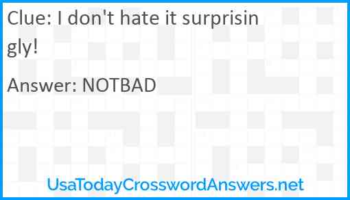 I don't hate it surprisingly! is a crossword clue for which we have 1 possible answer in our database. This crossword clue was last seen on USA Today Crossword April 15 2025!