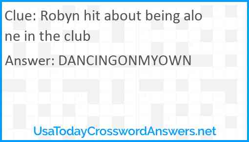 Robyn hit about being alone in the club is a crossword clue for which we have 1 possible answer in our database. This crossword clue was last seen on USA Today Crossword July 5 2025!