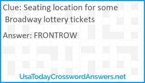 Seating location for some Broadway lottery tickets is a crossword clue for which we have 1 possible answer in our database. This crossword clue was last seen on USA Today Crossword June 10 2025!