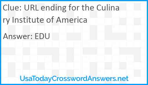 URL ending for the Culinary Institute of America is a crossword clue for which we have 1 possible answer in our database. This crossword clue was last seen on USA Today Crossword April 15 2025!