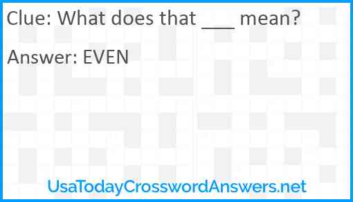 What does that ___ mean? is a crossword clue for which we have 1 possible answer in our database. This crossword clue was last seen on USA Today Crossword July 5 2025!