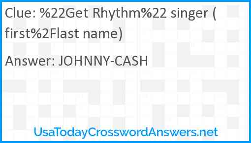 %22Get Rhythm%22 singer (first%2Flast name) is a crossword clue for which we have 1 possible answer in our database. This crossword clue was last seen on USA Today Word Round Up September 28 2023!