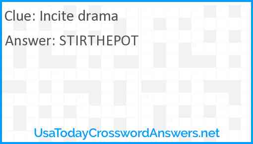 Incite drama is a crossword clue for which we have 1 possible answer in our database. This crossword clue was last seen on USA Today Crossword November 20 2023!