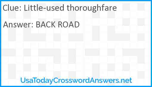 Little-used thoroughfare is a crossword clue for which we have 1 possible answer in our database. This crossword clue was last seen on USA Today Up & Down Words October 3 2022!