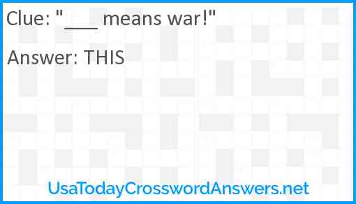 "___ means war!" is a crossword clue for which we have 1 possible answer in our database. This crossword clue was last seen on USA Today Crossword August 14 2018!