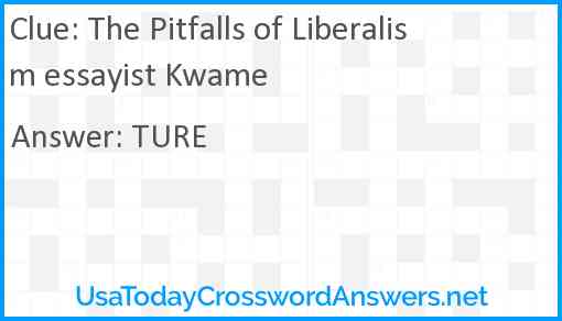 The Pitfalls of Liberalism essayist Kwame is a crossword clue for which we have 1 possible answer in our database. This crossword clue was last seen on USA Today Crossword January 27 2023!