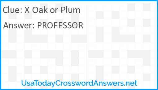 X Oak or Plum is a crossword clue for which we have 1 possible answer in our database. This crossword clue was last seen on USA Today Crossword January 27 2023!